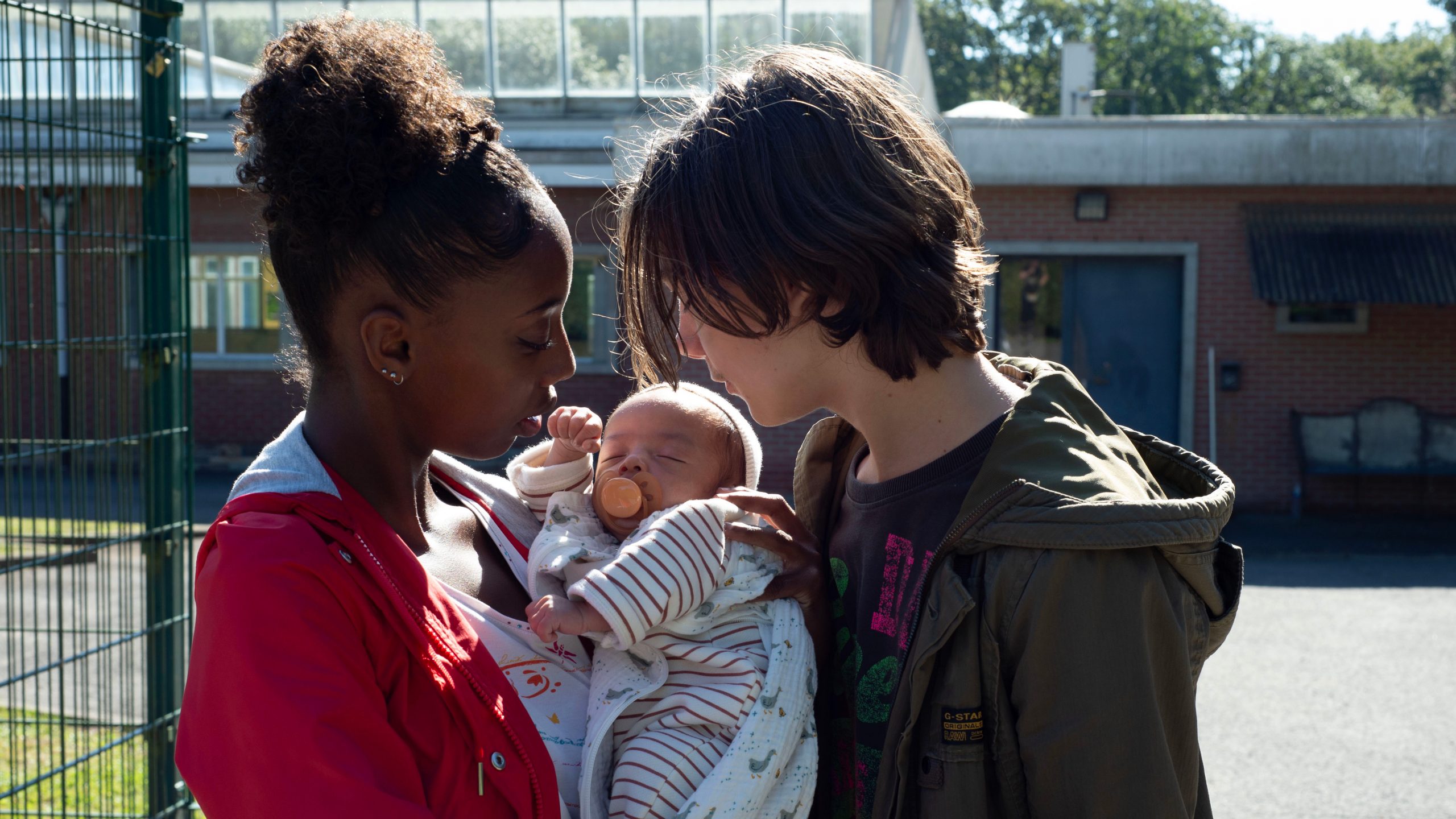 To play these characters, the Dardennes have cast young women who, though all of them have acted before in some capacity, still have a quietly moving guilelessness. These performances are forthright, unvarnished. What hits you immediately is how impossibly young these characters are. Verbeek’s Jessica, the girl in search of her lost mother, looks the youngest, her face still full and round with baby fat. Laruelle’s Perla is both tough and vulnerable; she pushes her baby in his carriage with the assurance of a ballet dancer, yet she crumples when she finally has to reckon with her boyfriend’s callousness. Young Mothers is fiction, but it has the feel of a documentary; you recognize that these women’s feelings, and their fears, are certainly playing out somewhere in your own city or town, probably in your own neighborhood. When Ariane meets her baby’s adoptive parents for the first time, she asks them tentatively if either of them plays an instrument. She’s visibly relieved to learn that the potential young father plays the saxophone. And then she begs these eager, hopeful prospective parents to make sure her daughter has music in her life.