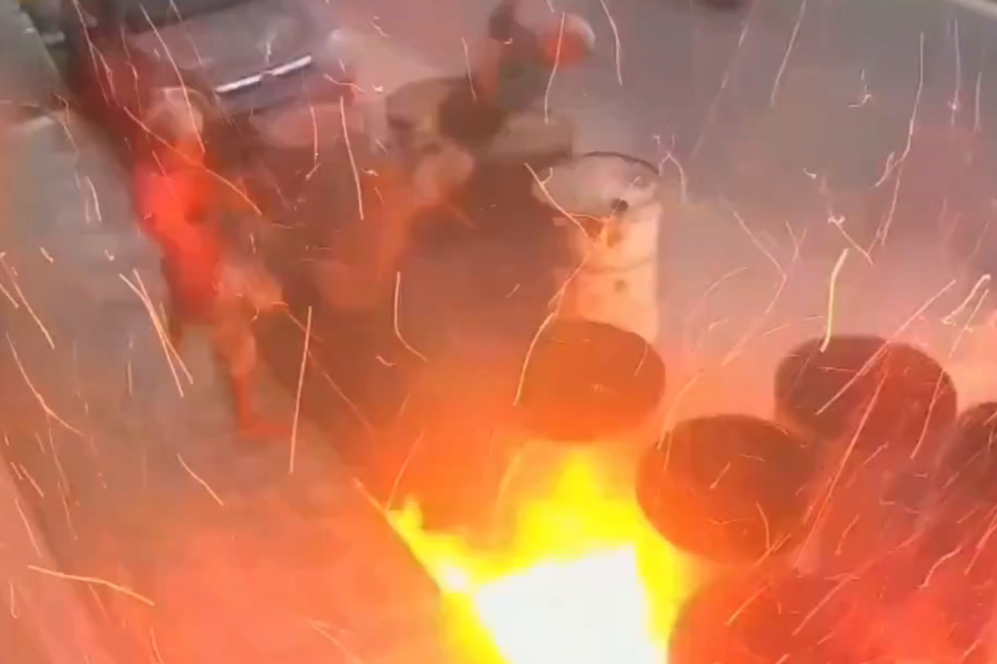 THIS is the terrifying moment two men are sent flying after playing with a lighter over an oil drum. The shocking video shows one man clicking a lighter above a seemingly empty oil drum – with dramatic consequences. The metal drum explodes into flames, and propels both youths into the air. The explosion took place…