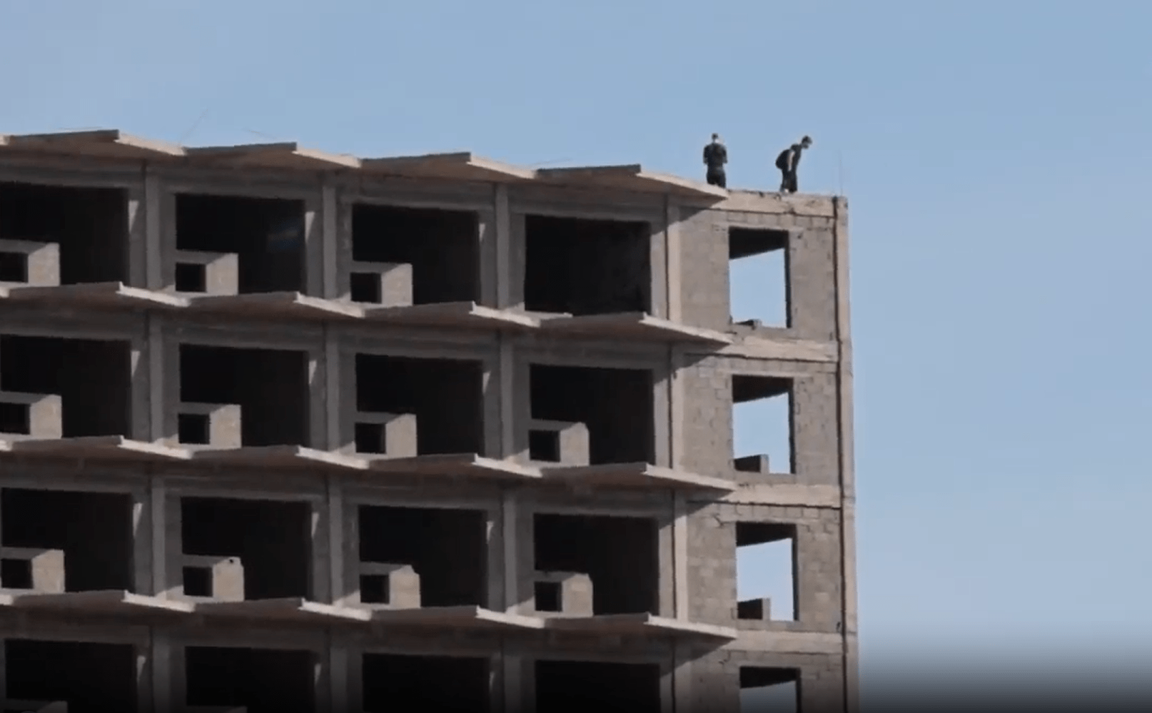 TWO idiot British tourists have risked their lives taking selfies from the roof of an infamous “building of death” hotel. Towering 22-storeys high, the Brits broke into the abandoned hotel in Tenerife and made it up to the roof to take the indulgent pics. Footage show the foolish pair walking dangerously close to the edge…