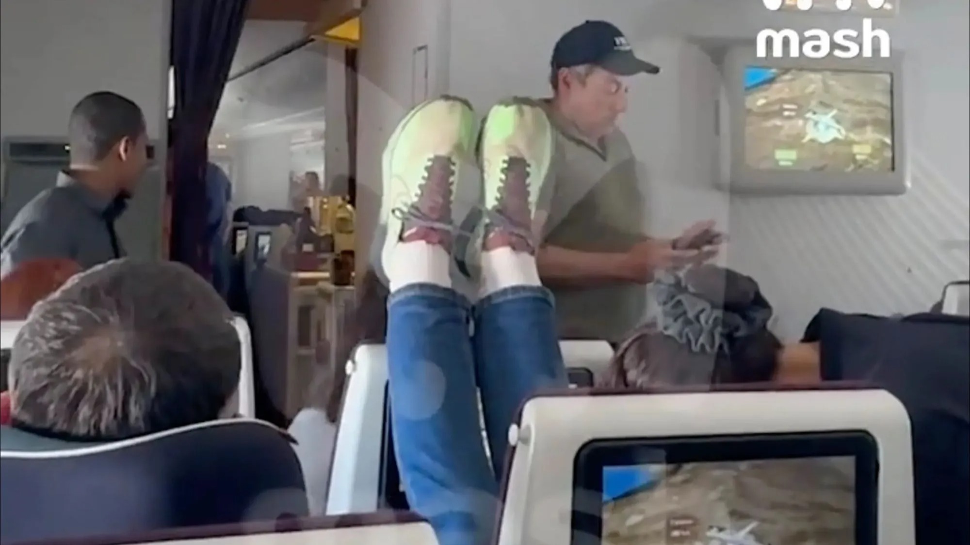 THIS is the moment a passenger from hell shamelessly planted her feet on a headrest after the woman in front dared to recline her seat. Footage from a Qatar Airways flight shows the enraged woman stretching her legs over the back of an economy class seat on a Doha to Moscow service, turning the cabin…