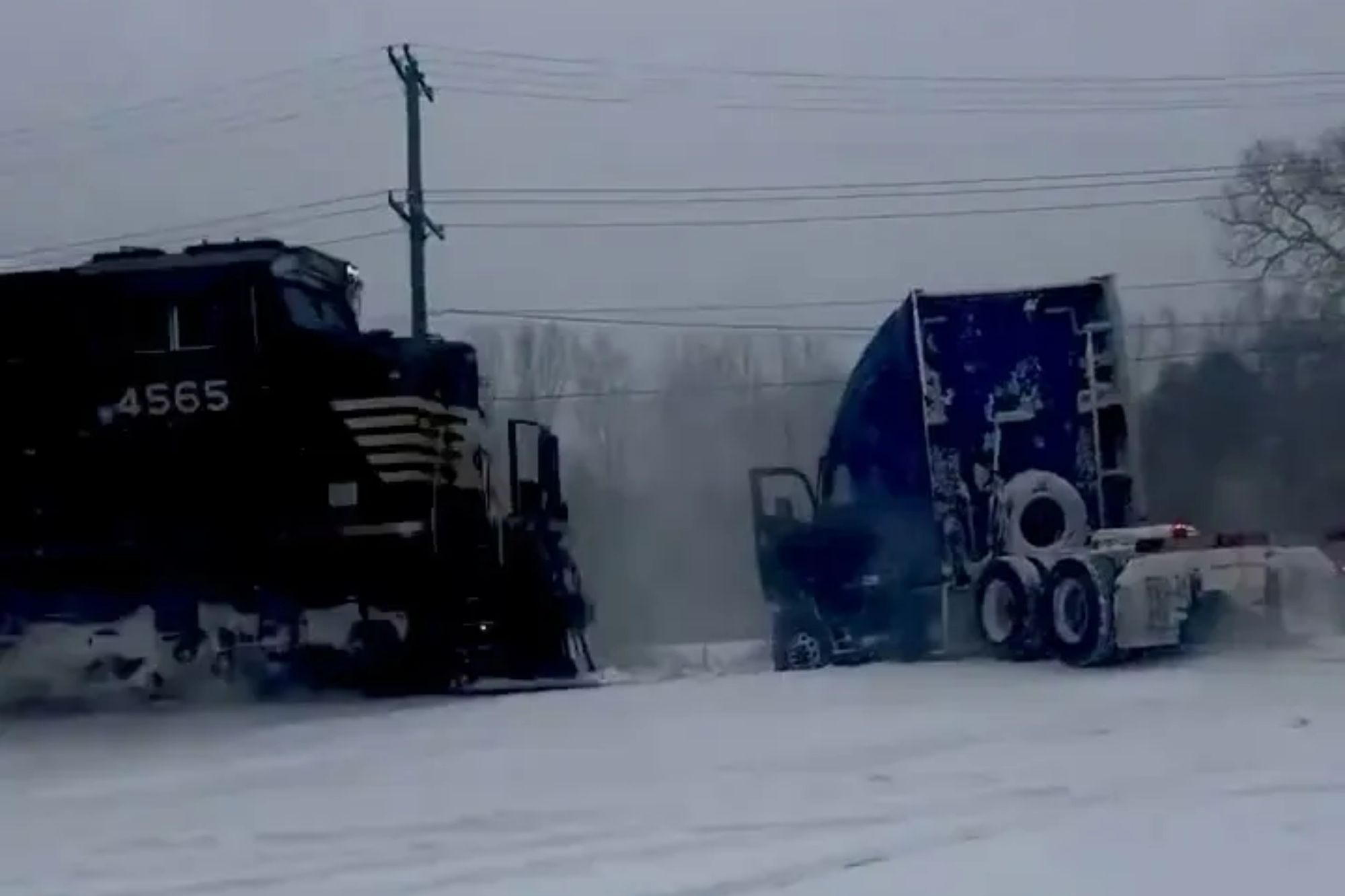 THIS is the terrifying moment a truck stuck on rail tracks is smashed by an oncoming train. A blue semi truck cabin became lodged on snowy train tracks in Gastonia, North Carolina during a powerful winter storm. The shaky video, taken by a shocked onlooker, shows an freight train barrel towards the truck – too…