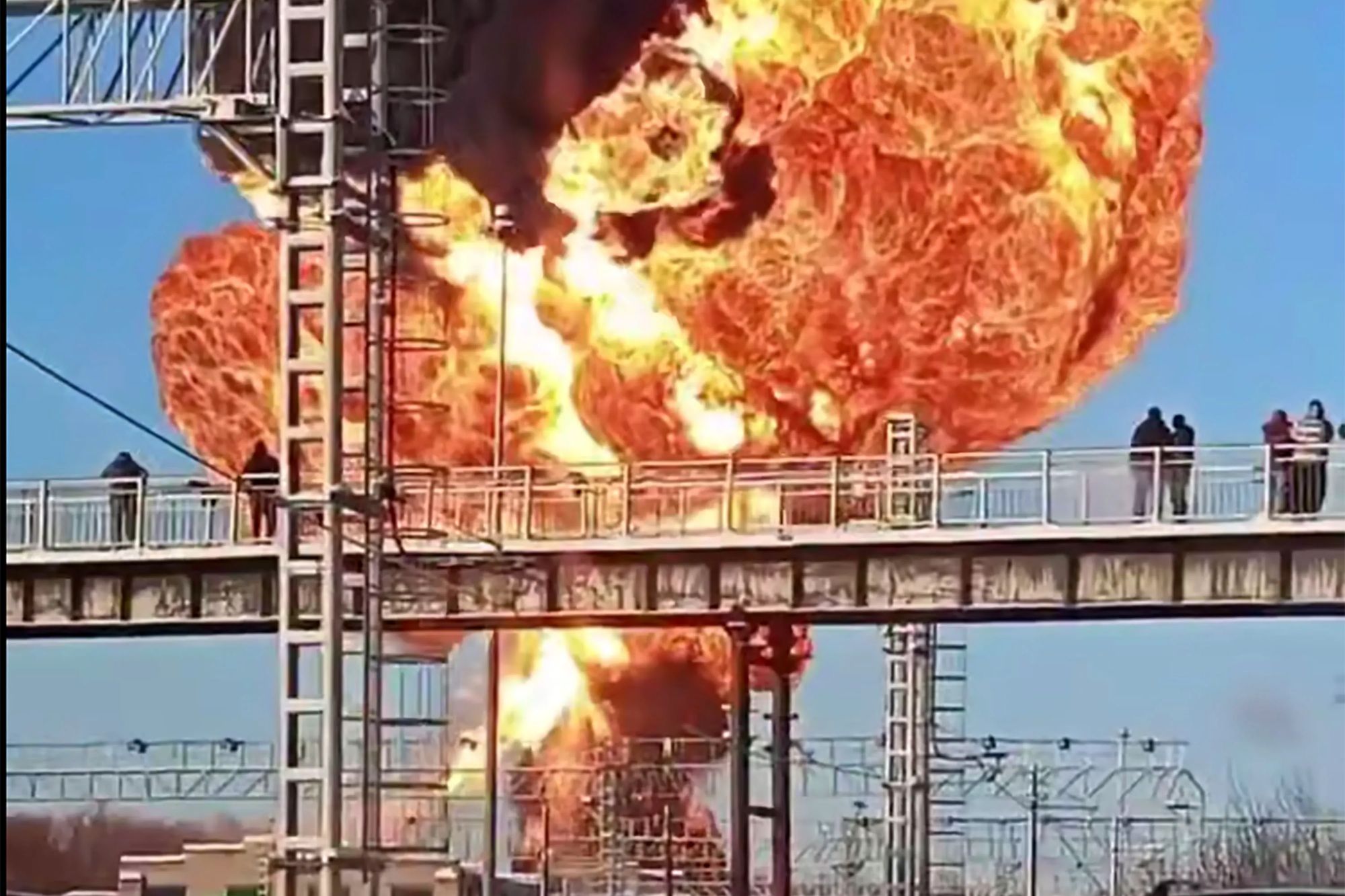 THIS is the dramatic moment a giant mushroom cloud fireball blast erupts after a fuel train derailment in Russia. Flames were sent over 1,000ft into the sky after the explosion as suspicions were raised over if Vladimir Putin’s key war train was hit in a sabotage attack. Billowing smoke could be seen across the Russian region…