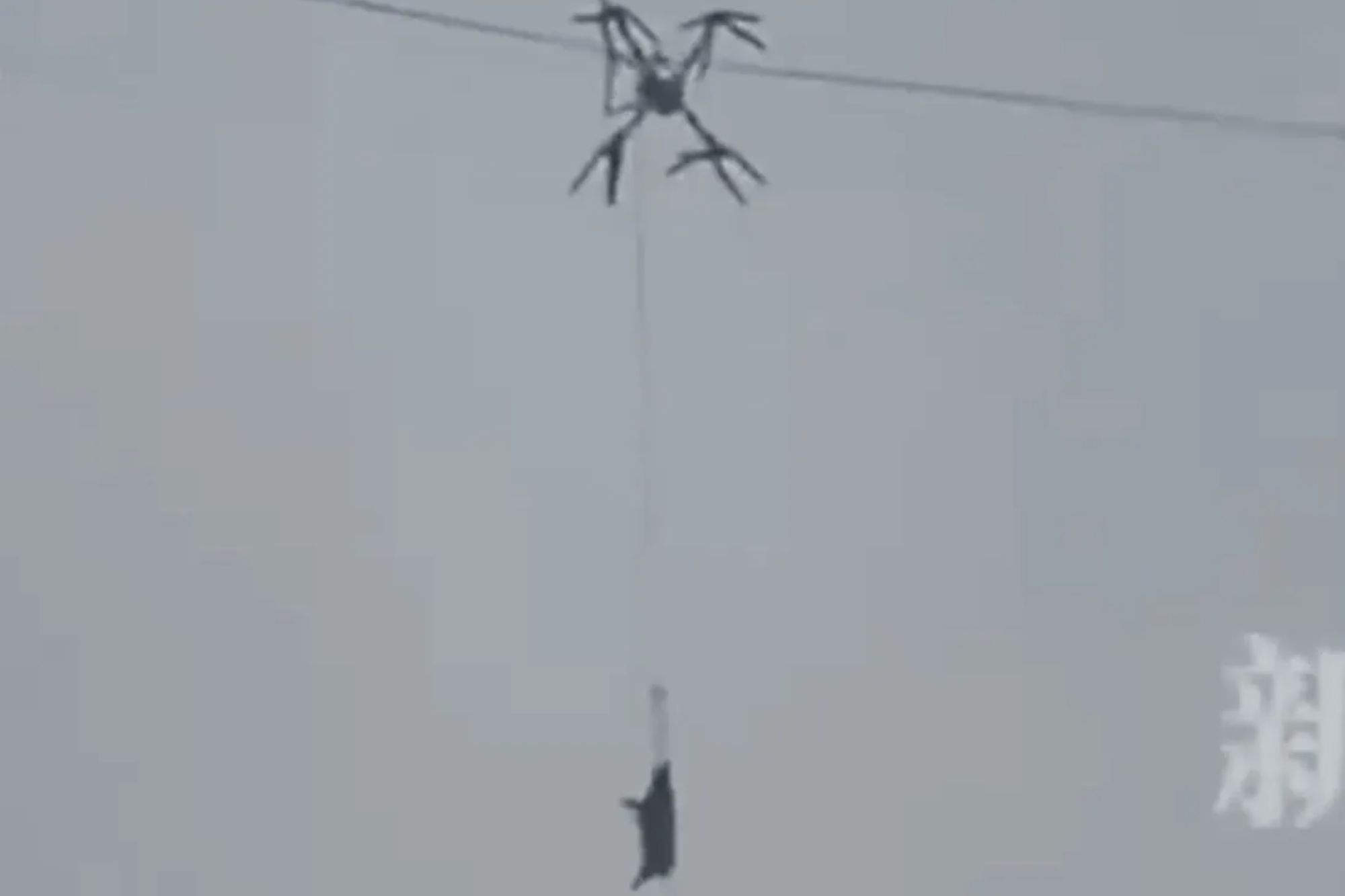 THIS is shocking moment a drone carrying a pig gets caught tangled in power cables, causing a 10 hour blackout. Jaw-dropping footage shows the comical silhouette of the suspended animal against a cloudy sky in China. In the background, disbelieving spectators can be heard asking if the animal is okay despite despite being suspended at…